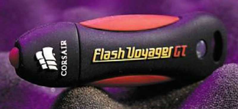 Corsair Voyager GT - это симпатичная флешка в приятном на ощупь полимерном корпусе черно-красной расцветки. Коннектор защищен съемным колпачком, а индикатор активности мигает голубым цветом.