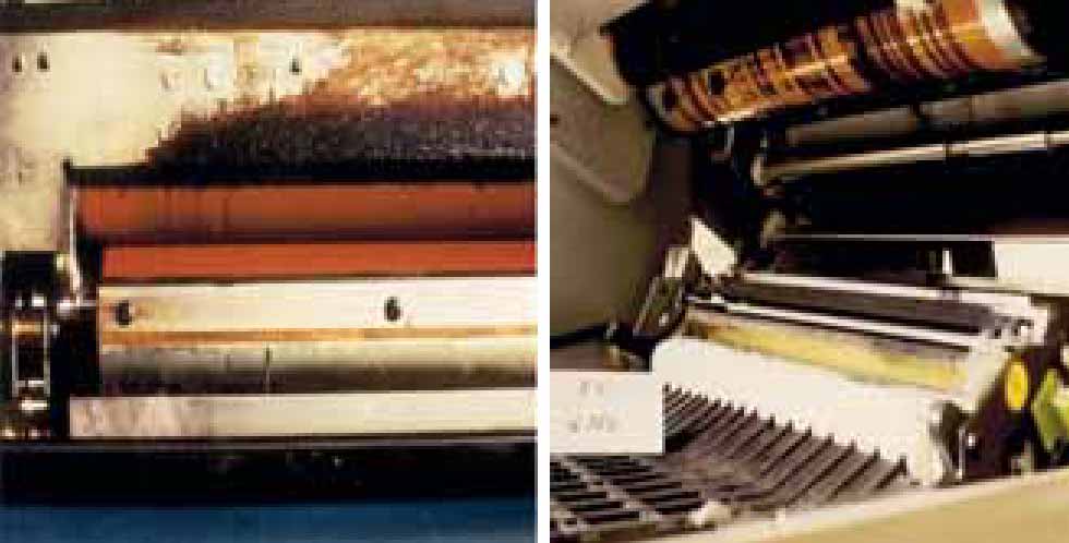 Бывает бумага из плохо сваренной целлюлозы с вкраплениями, с остатками клея, воска, смолы. Все это оседает на барабане, фьюзере, валах, которые в дальнейшем идут только под замену.