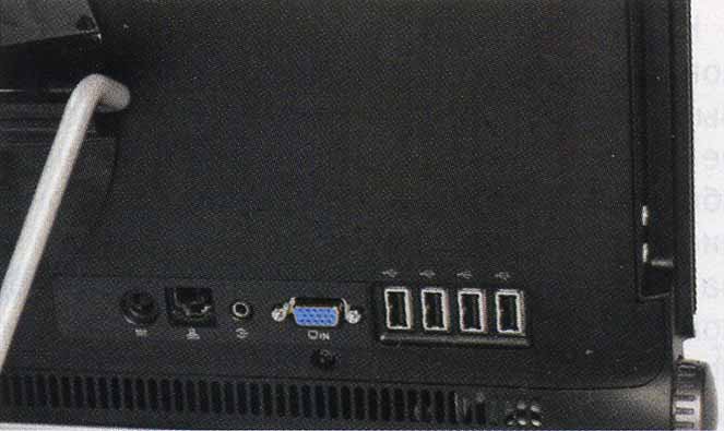 Что же касается внешнего вида, то моноблок выглядит типично: черный корпус, сенсорная панель с диагональю 23.6” и разрешением Full HD. Кстати, дисплей имеет очень неплохую цветопередачу и довольно широкие углы обзора. На левой грани расположены разъемы для микрофона и наушников, два USB 3.0, кард-ридер 4-в-1. Справа можно найти клавиши управления подсветкой, громкости и режимов дисплея, а также оптический привод. На задней панели: разъем для питания, RJ-45, два HDMI, D-Sub, так что моноблок можно использовать для вывода изображения с других источников, и 4 порта USB 2.0.