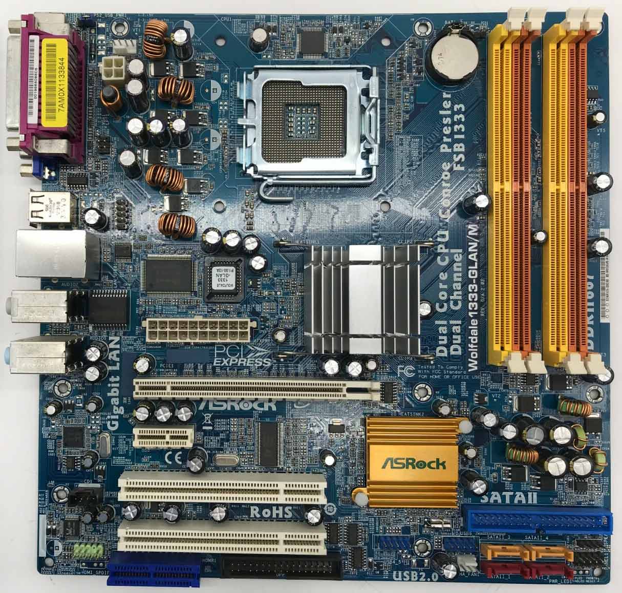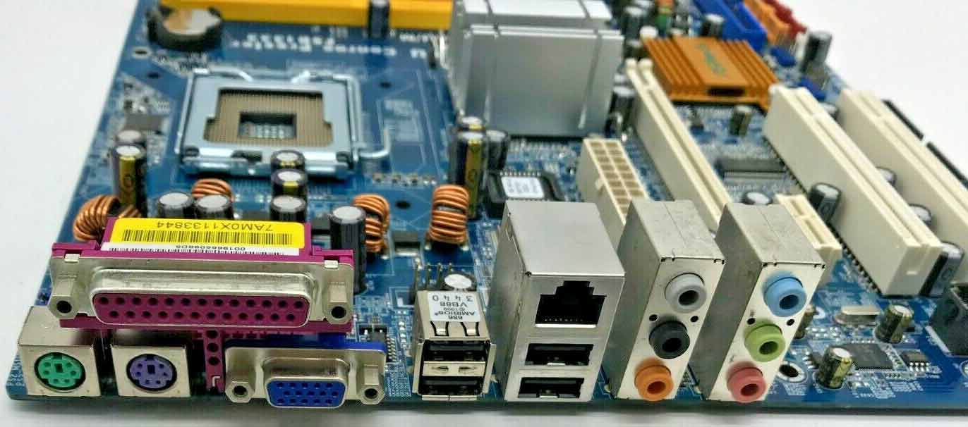 Также в арсенале присутствуют по одному слоту PCI Express х16 и PCI Express xl, два слота PCI, четыре порта SATA 2, один коннектор АТА100 IDE, один FDD- коннектор и один COM-порт. При этом на заднюю панель выведены два порта PS/2 для подключения мышки и клавиатуры, один VGA-порт, один параллельный порт, четыре порта USB 2.0 и один разъем RJ-45.