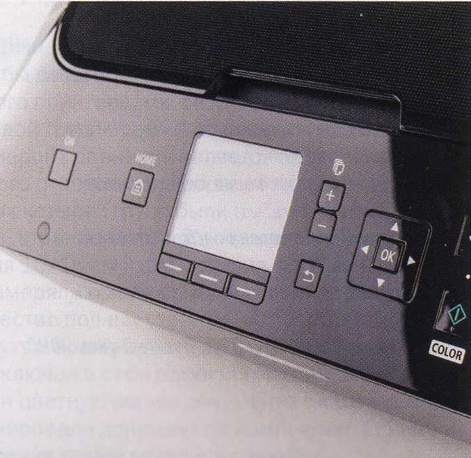 Все управление Canon PIXMA MG5440 выведено на наклонную панель с небольшим дисплеем, который хотя и не сенсорный, недовольно информативен, а благодаря заметному количеству кнопок, русскоязычным подписям и логичному меню, работа с ним не доставляет хлопот. Сканер и копир работают отменно, правда, крышка сканера утоплена в центре всей конструкции, поэтому копировать большие книги, прижимая крышкой страницы, будет очень неудобно.