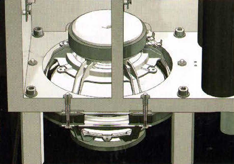 Sie besteht aus zwei Tieftönern, die Kopf an Kopf im Sockel stecken. Die zwischen den Membranen eingeschlossene Luft koppelt die Treiber und erzwingt eine für beide Bewegungsrichtungen identische Kraft-Weg-Kennlinie, bei der sich Unsymmetrien der Schwingsysteme gegenseitig aufheben. Das Gehäuse ist wie bei einer Bassreflexbox durch Rohre ventiliert, die den Tiefbass verstärken.