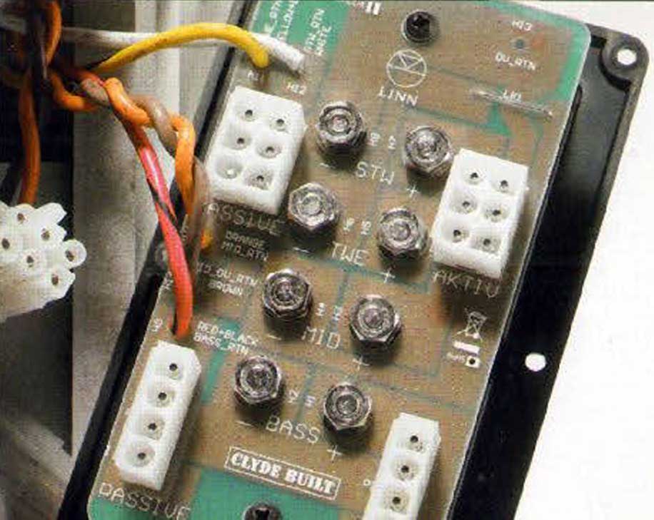 Die Umrüstung verläuft denkbar einfach. Die serienmäßige Passivweiche bleibt in der Box, wird lediglich durch Umstecken einiger Kabel aus dem Signalweg genommen. Maßgeschneiderte Aktivweichen bietet der Zubehörkatalog in Form kleiner Karten, die kurzerhand in die dafür vorgesehenen Steckplätze der Linn-eigenen Endstufen geschoben werden. Optimal geeignet sind die Majik-Verstärker, die je nach Version zwischen zwei und sechs Kanälen in einem Gehäuse beherbergen.