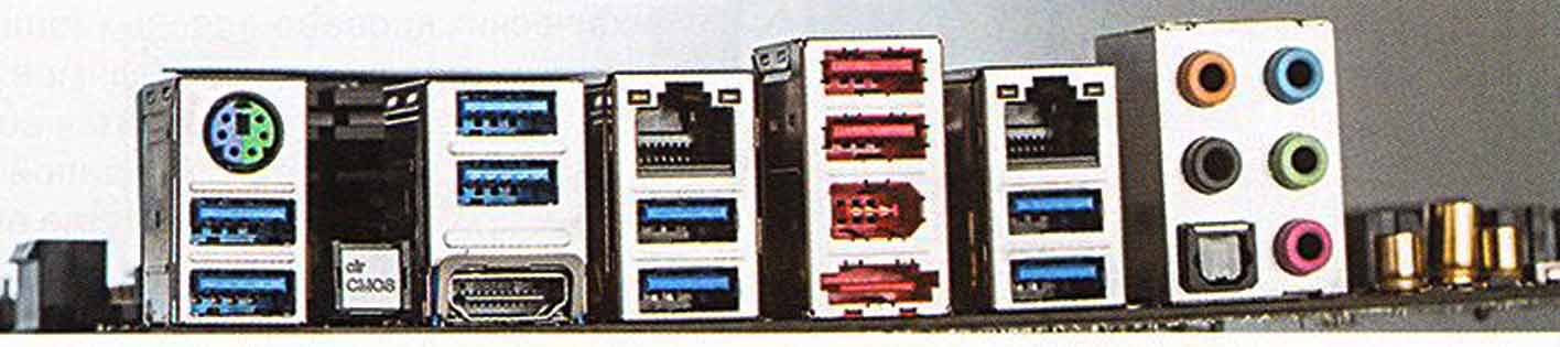 - Разъемы на задней панели: 8х USB 3.0. 2х USB 2.0. 1x HDMI, 1x IEEE1394, 1х S/PDIF, 1x eSATA, 2х RJ-45,1х PS/2. 5х 3.5-мм jack