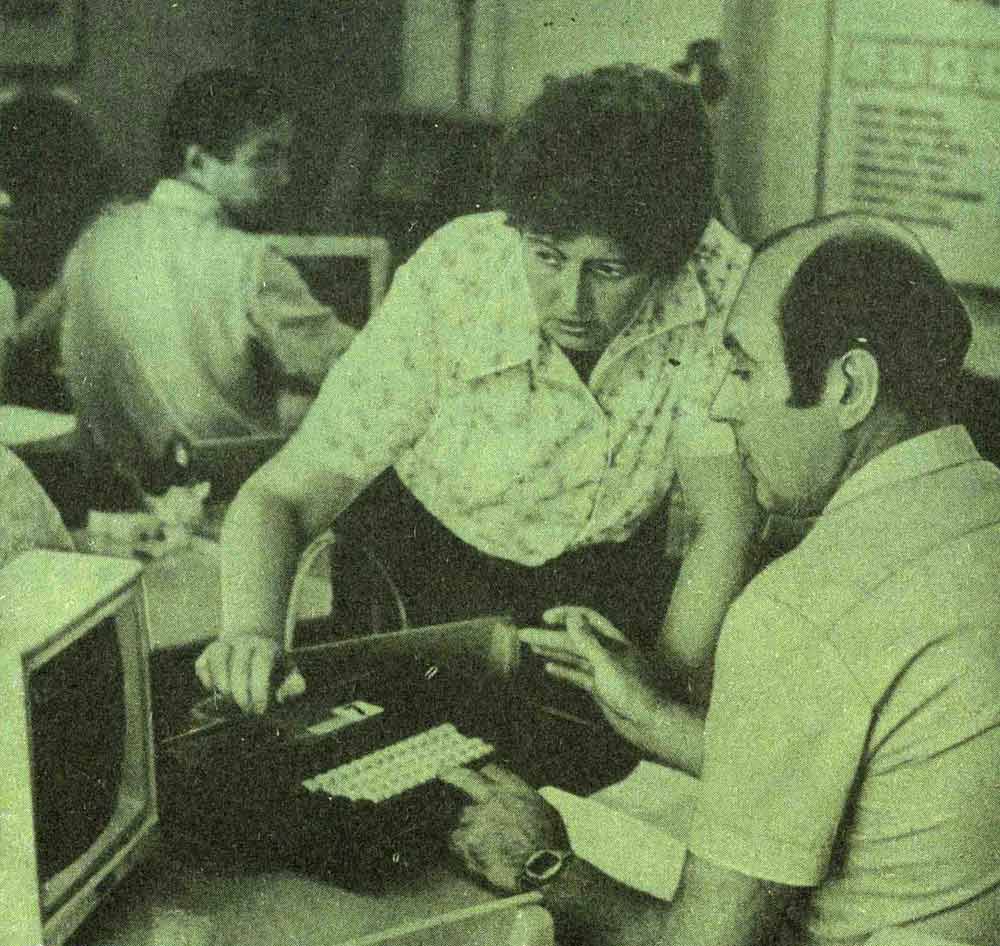 Летом 1986 года многие педагоги познакомились с вычислительной техникой на курсах переподготовки. Они были организованы и в Московском областном институте усовершенствования учителей (МОИУУ). Занятия проводились по 36-часовой программе для учителей математики, физики, химии и по 12-часовой программе — для преподавателей других предметов. Половина учебного времени отводилась работе на ЭВМ. Учителя преодолели своеобразный психологический барьер, убедились, что вести диалог с компьютером может каждый. Интерес к занятиям был чрезвычайно велик. В дисплейном классе педагоги не только познакомились с современной вычислительной техникой, но и сами составляли несложные программы по своему предмету. Обучающие программы, по которым готовились педагоги, были составлены не только по информатике, физике, математике, но и по биологии.