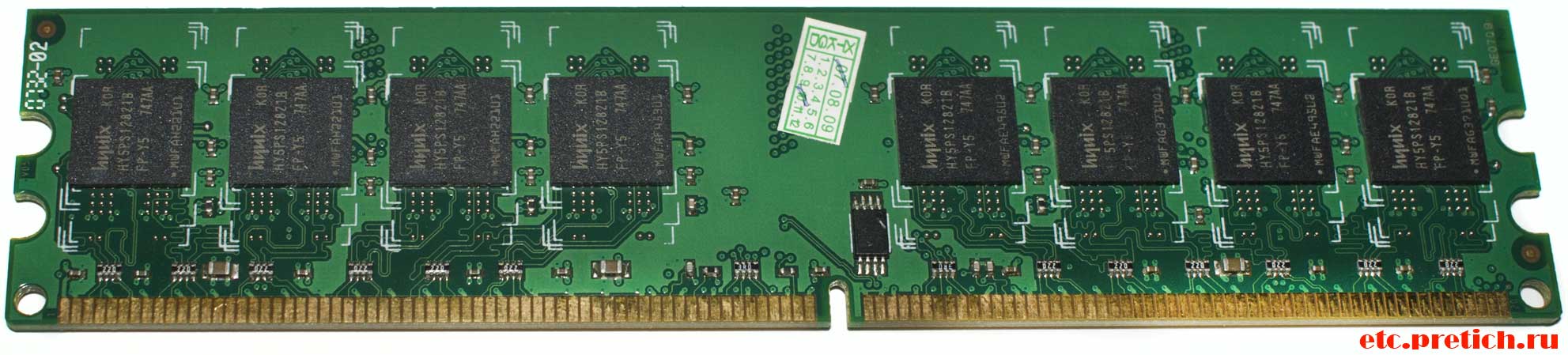 На плате 16 штук микросхем памяти - по восемь на каждой стороне. И это микросхемы от другого производителя - от Hynix и маркировка на них HY5PS12821B FP-Y5. Странно. Обычно Кингстон использует чипы собственного производства... а здесь, непонятно. Может для того, чтобы удешевить продукцию? Наверное.